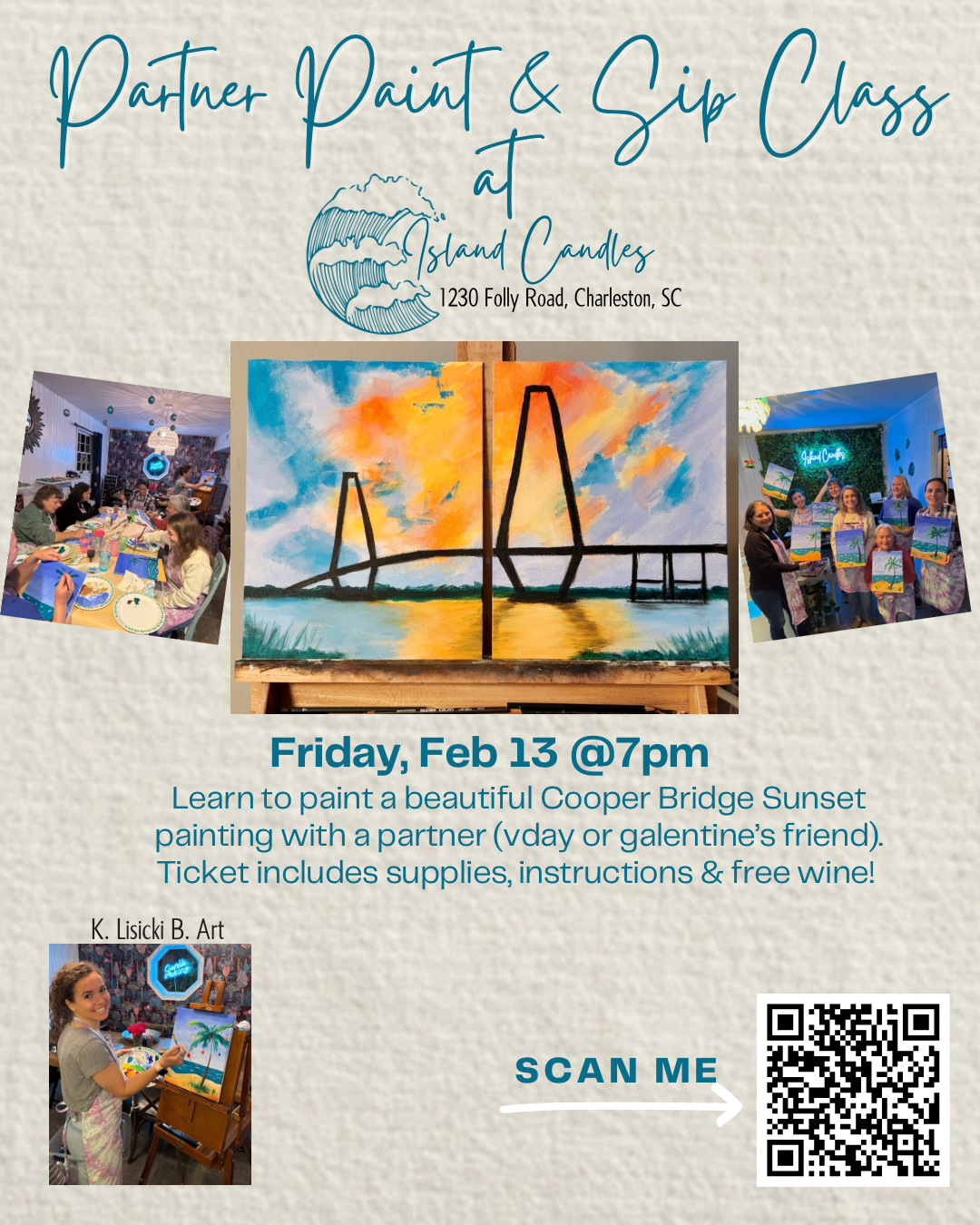 Visit us at our new location on James Island by joining our creative public parties shown below, or book your own private party with us!