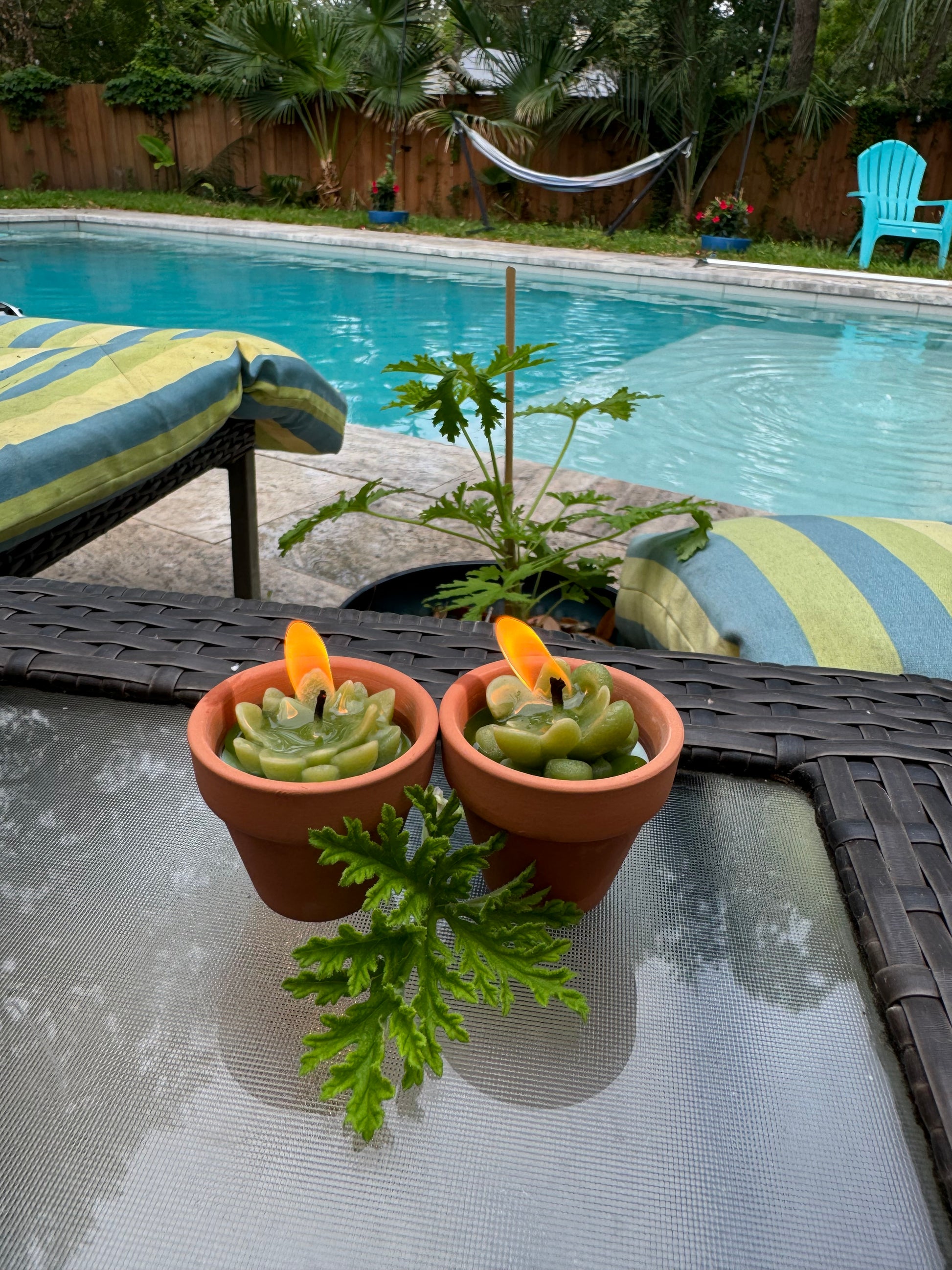 Non-toxic, hypo-allergenic, sustainable & re-potable for real succulents when you’re done burning!